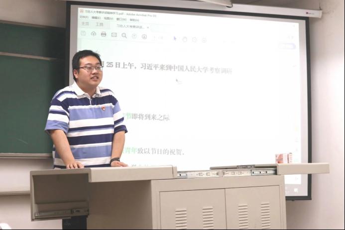 首先,全体党员同志一起观摩并学习了习近平总书记此次“人大行”的视频,并由中国人民大学2017级本科生杨涪尧同学为大家讲述了建校历程和吴玉章老校长等故事,让在座党员同志对我国人文社会科学高等教育领域的这面旗帜有了更为深入的了解。