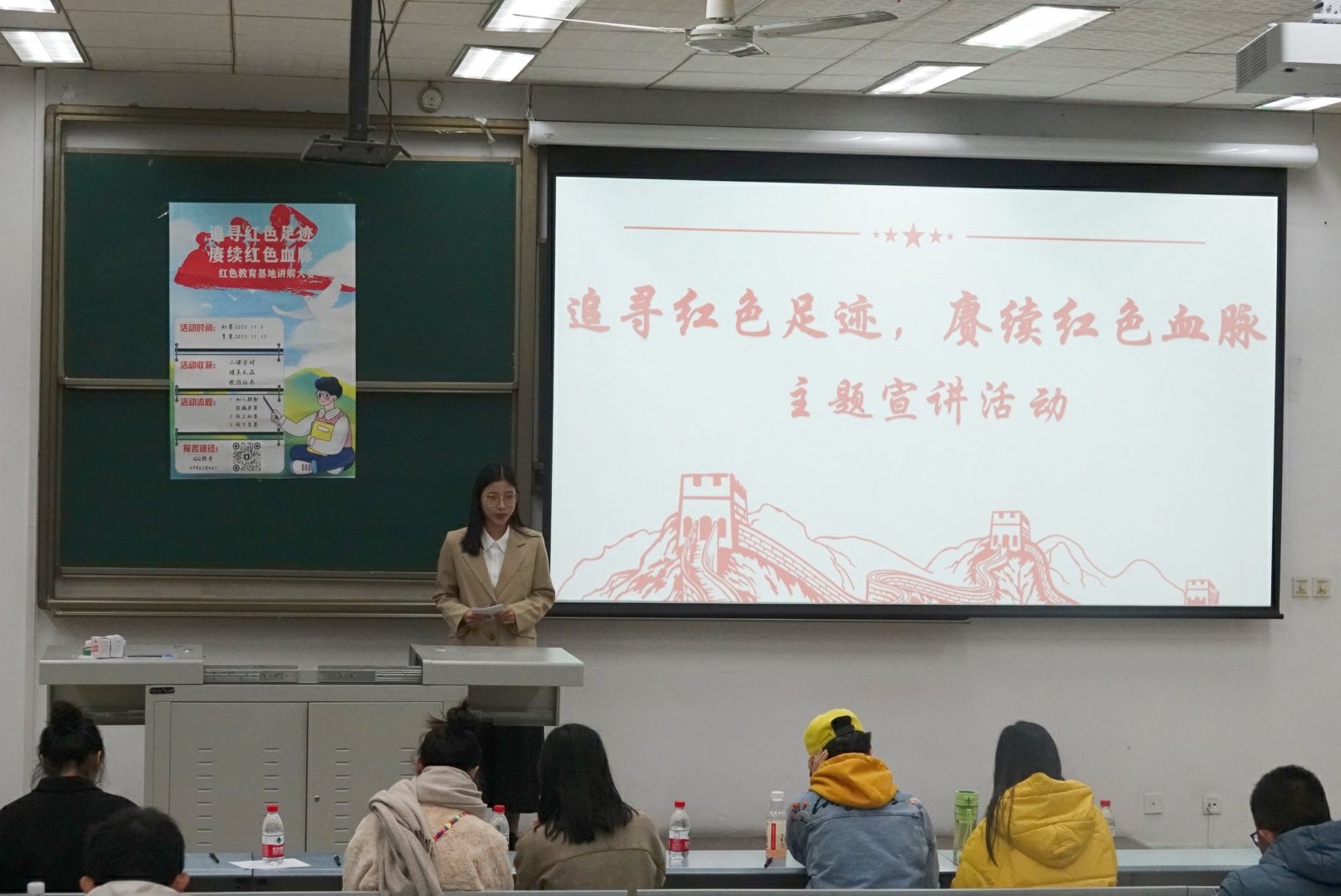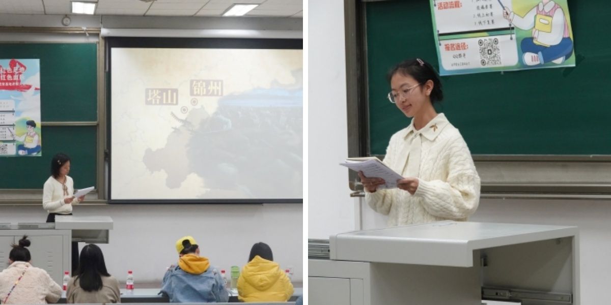 学生会承办的“追寻红色足迹,赓续红色血脉”红色教育基地讲解大赛在X1315举行。经过层层选拔后,共有10位选手进入决赛。本次比赛由孙嘉翼主持,辅导员杜晓林、高楠老师以及院学生会主席团成员刘泠希、戴一旸等同学担任评委。