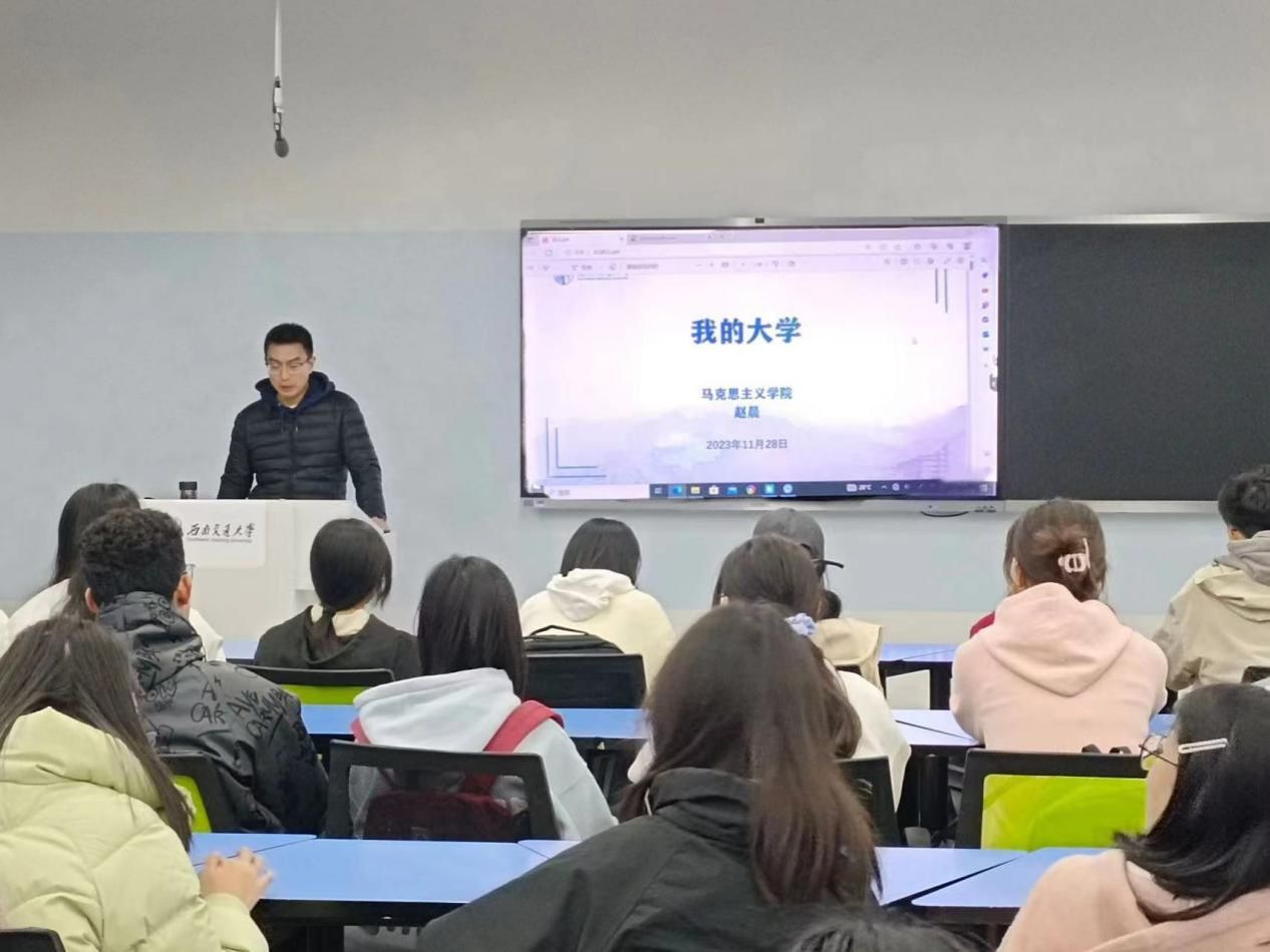 于X9302教室举行了新生生涯教育规划讲座。此次讲座由赵晨老师主讲。通过此次讲座,同学们对于如何去充实、利用未来四年大学生活来提升自身能力有了更深层的思考,对于自身职业走向有了更清晰的规划。