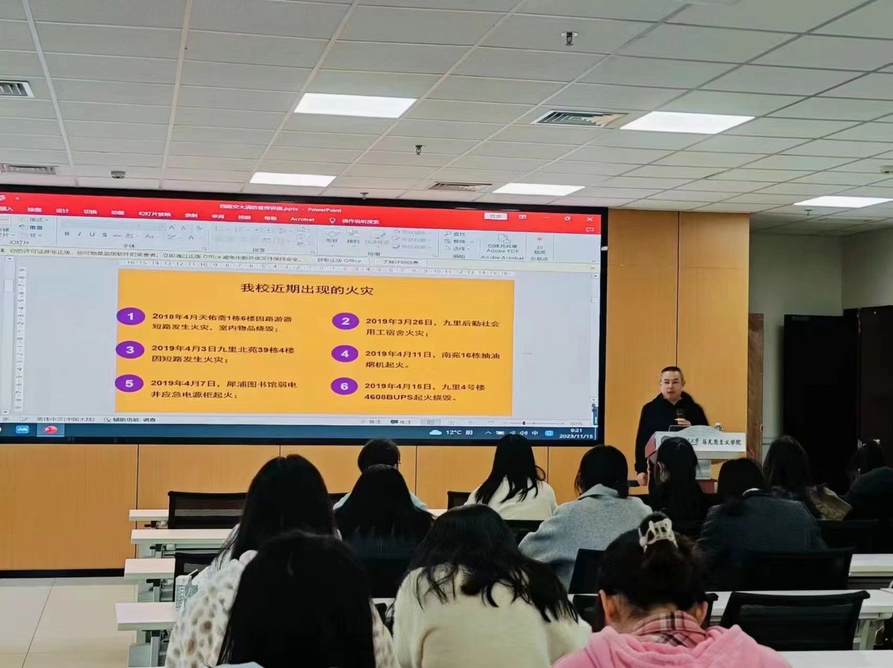 于2023年11月15日9:00在3号教学楼31325报告厅开展2023年消防安全知识培训与校园安全专题讲座。讲座分别由保卫处李伟群老师与曾坤老师主讲。此次讲座提升了同学们的消防安全素养与安全意识,对于预防校园火灾,建设安全校园具有重要意义。