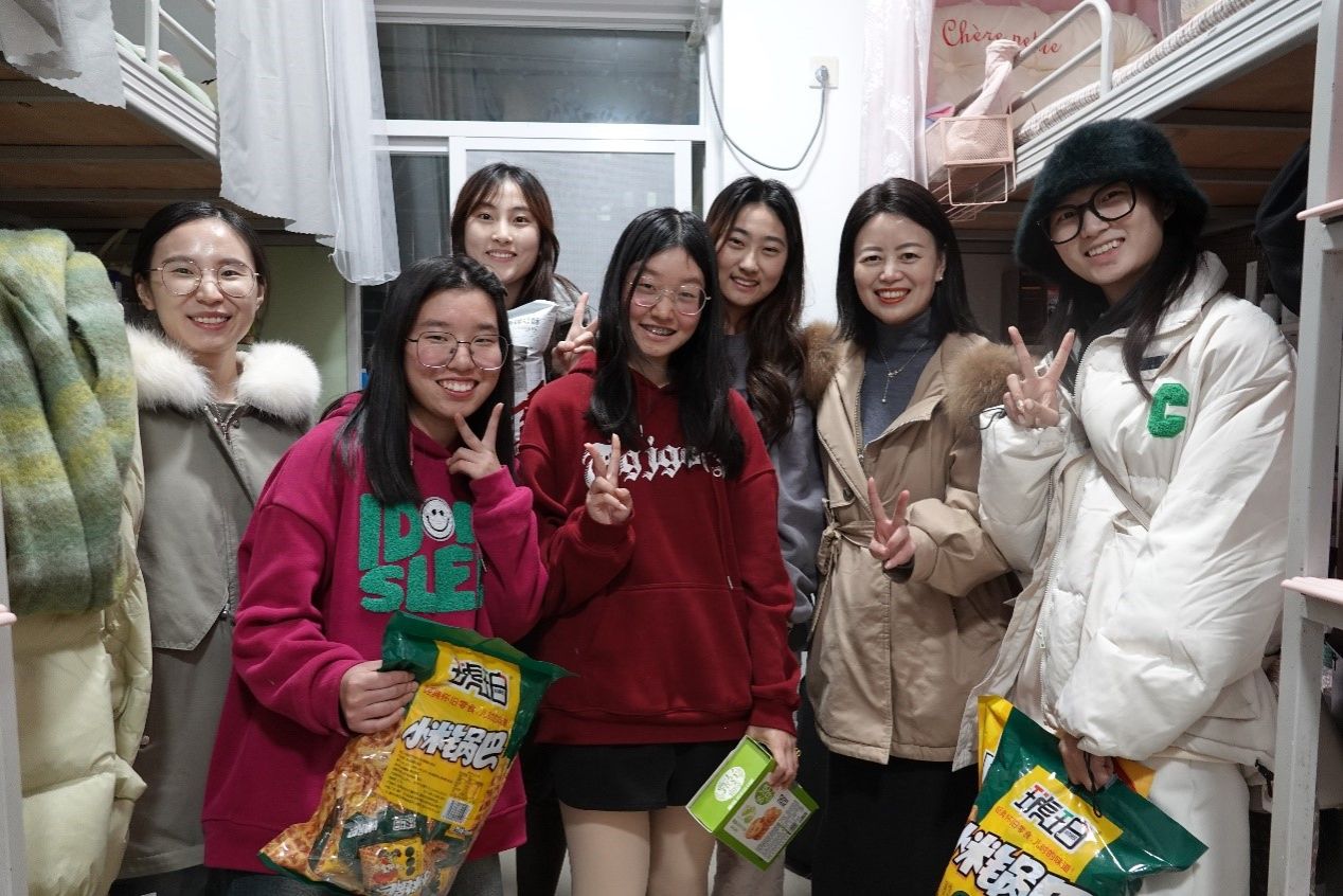 党委副书记邓秀芸、研究生辅导员赵晨、本科生辅导员杜晓林和高楠共同走访学生宿舍,看望慰问学生。