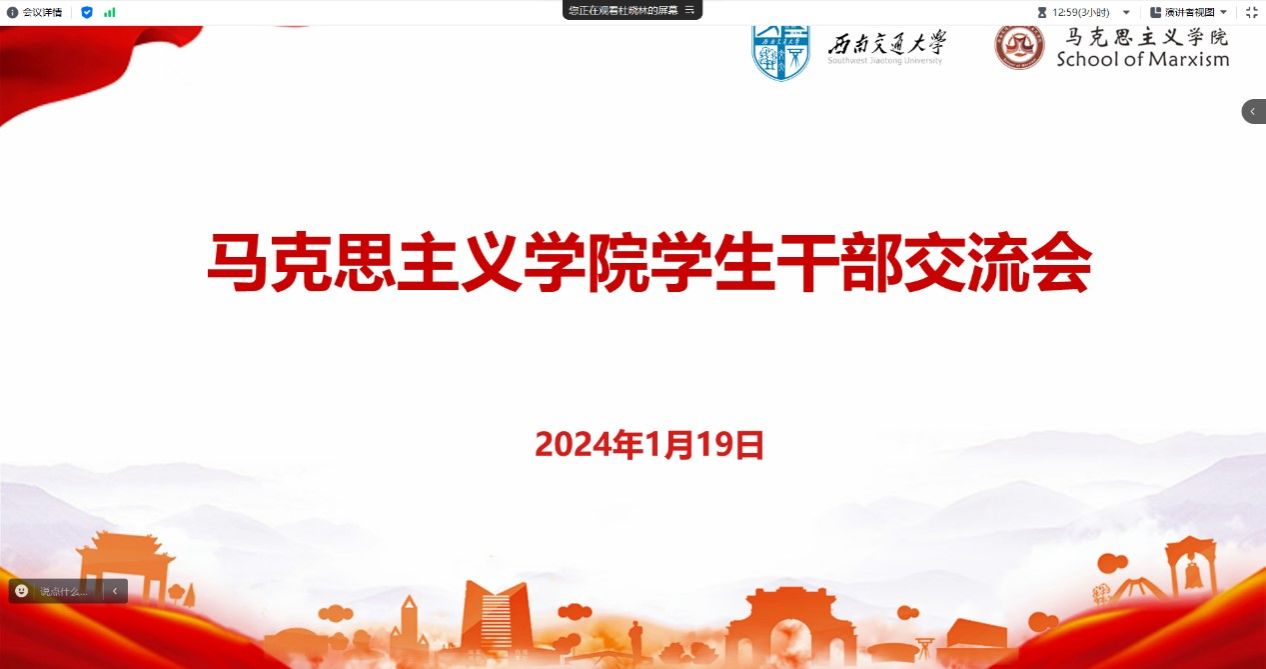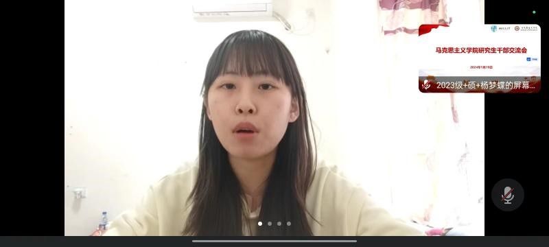 接着,进入研究生干部发言交流环节。2021级博士班班长冷书恒对本学期学生工作进行总结,交流了学习上的问题。2023级硕士班团支部书记王呈剑从生活和学习两个方面开展交流,色情电影