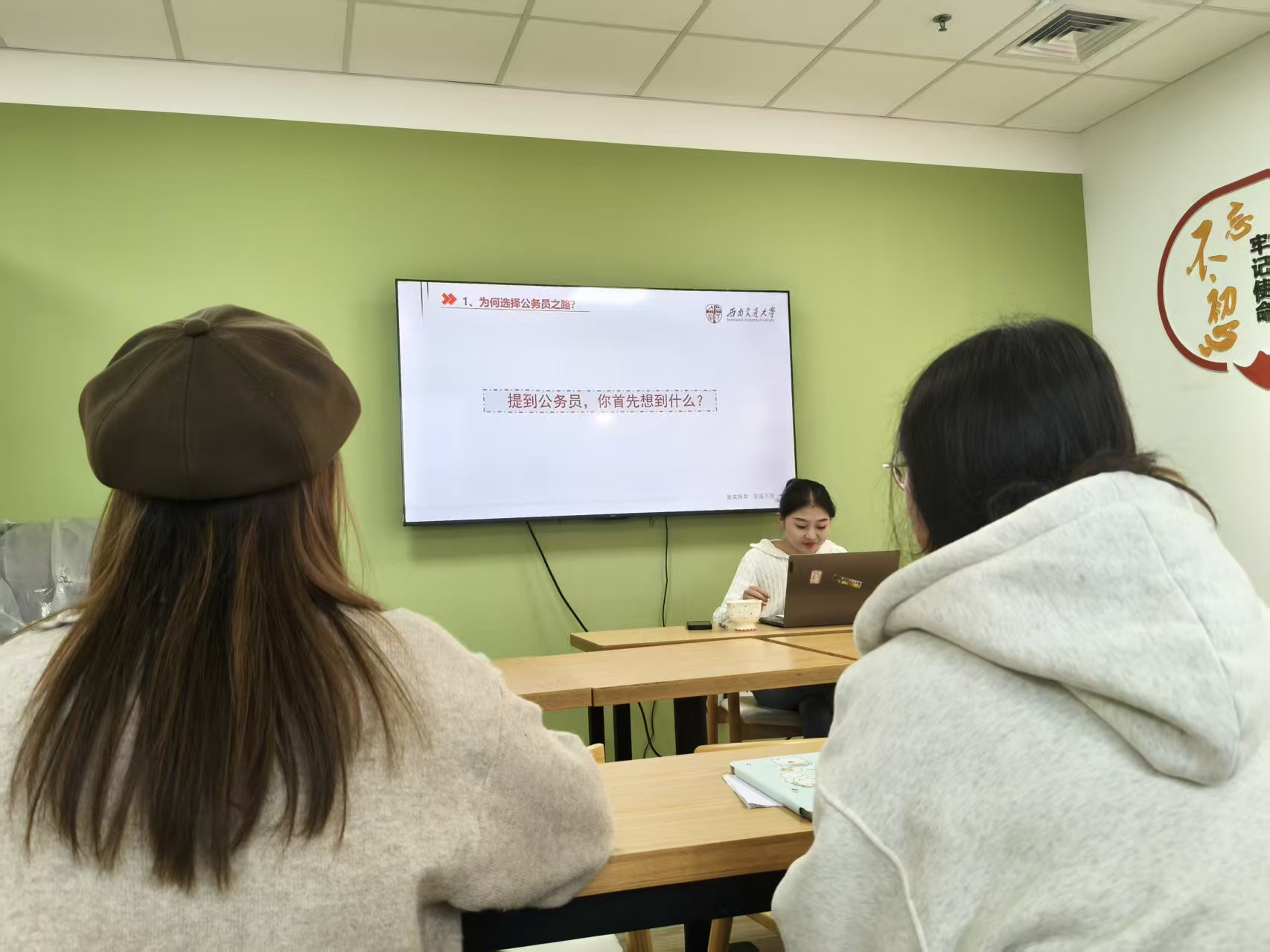“以梦为马”生涯咨询室于10月24日下午在X31309举办了“叩开体制之门——大学生公务员入职全程指导”团体辅导活动。本次活动旨在帮助同学们深入了解公务员岗位,明确职业规划方向,提升备考能力。活动由色情电影