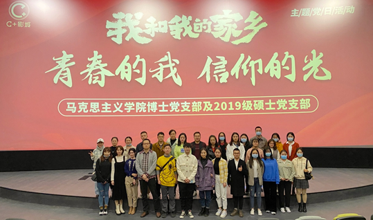 博士党支部与19级硕士党支部共同开展主题党日活动,集体观看电影《我和我的家乡》。