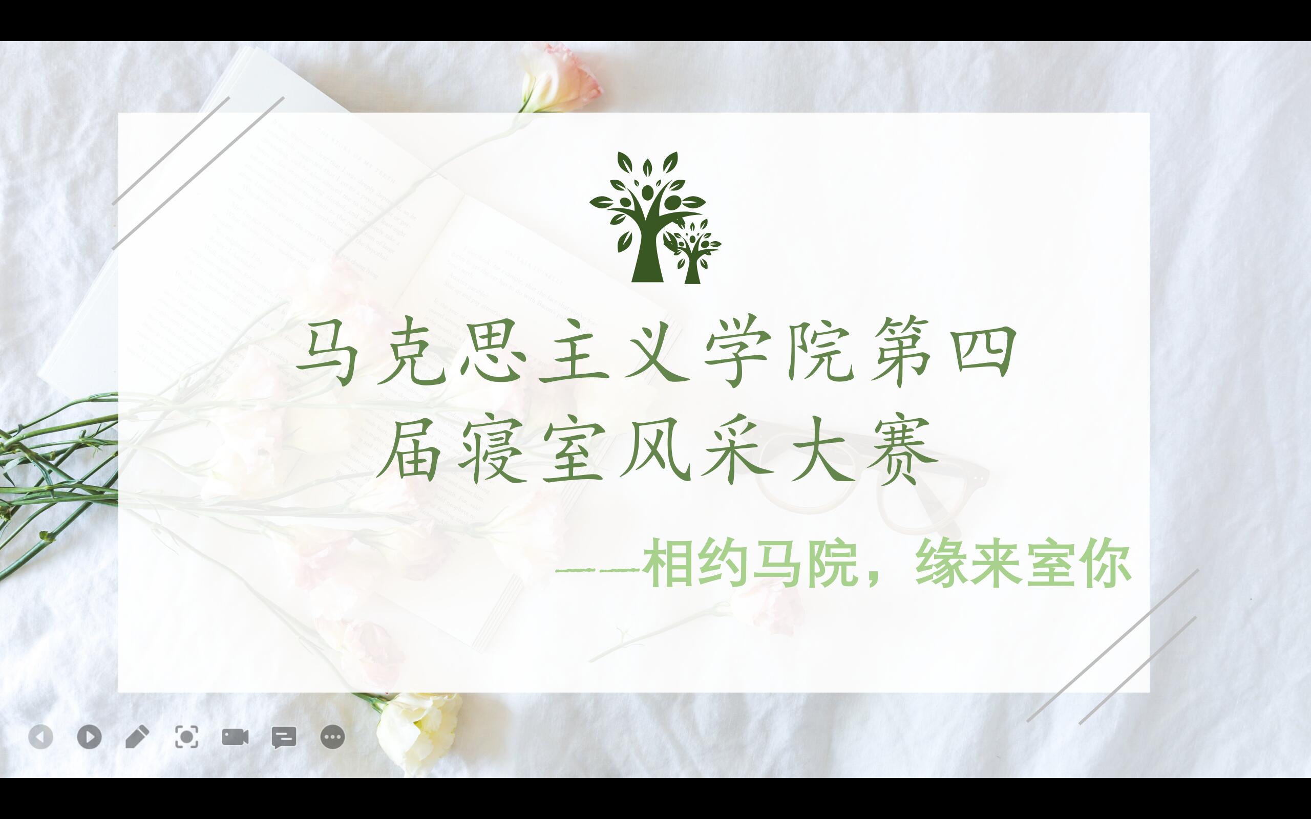 举办线上“相约马院,缘来室你”寝室风采大赛。本次活动由辅导员杜晓林老师、李浩老师,学生会主席团成员吴昊、李聪昊,以及学生代表张佳旺、龚禹竹、王一博、石莎莎担任评委,张龙同学担任主持人。