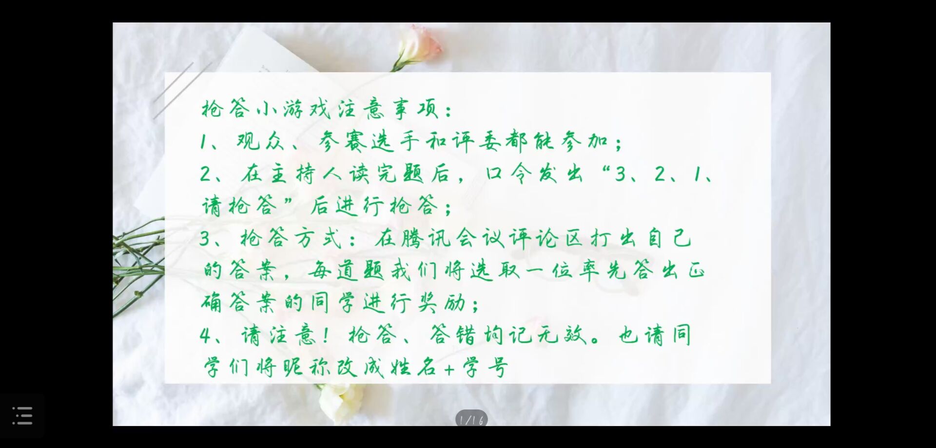 本次大赛共八个寝室参选,各寝室通过PPT及视频才艺表演来展示寝室风采。温馨的装饰、和谐的氛围、强大的凝聚力在我院学生寝室中展现得淋漓尽致,给大家留下了深刻印象。期间,主持人还设置了扣人心弦的抢答小游戏,每位率先正确作答的同学都能获得奖励,同学们的热情也在答题互动中持续高涨。