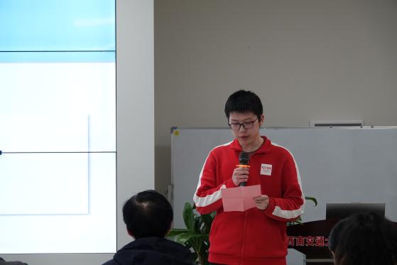 张艺鑫同学作为获奖选手代表发言,他强调了国防和青年的重要性,号召同学们将个人梦融入国家梦,弘扬竢实扬华、自强不息的交大精神,争做新时代新青年。