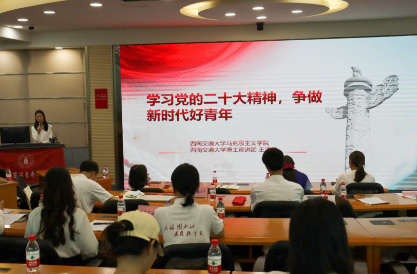 随后,王子琦以《用青年话语做好理论宣讲,用青春行动践行时代精神》为主题对西南交大博士宣讲团建设与发展作专题介绍。西南交大博士宣讲团宣讲育人传统鲜明、载体平台完善,持续加强队伍建设,逐步成为了培养新时代青年马克思主义者的重要平台。