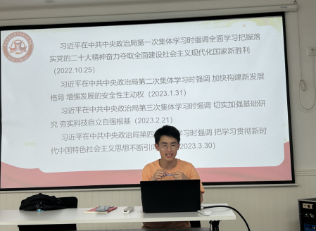 首先,支部宣传委员赵明起带领大家学习了习近平总书记在中共中央政治局第五次集体学习时的重要讲话,带领全体成员了解了建设教育强国的根本保证、根本任务、根本目标、重要使命、基本路径以及核心功能。