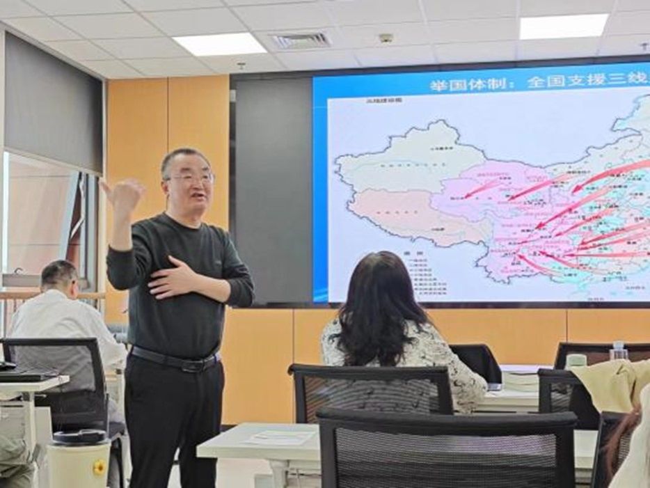 文学与音乐艺术学部周明长教授从三线建设的决策原因、三线铁路网建设以及西南三线建设等多方面,用通俗的语言和专业严谨的数据,极富激情向同学们讲述三线建设的艰苦奋斗史。