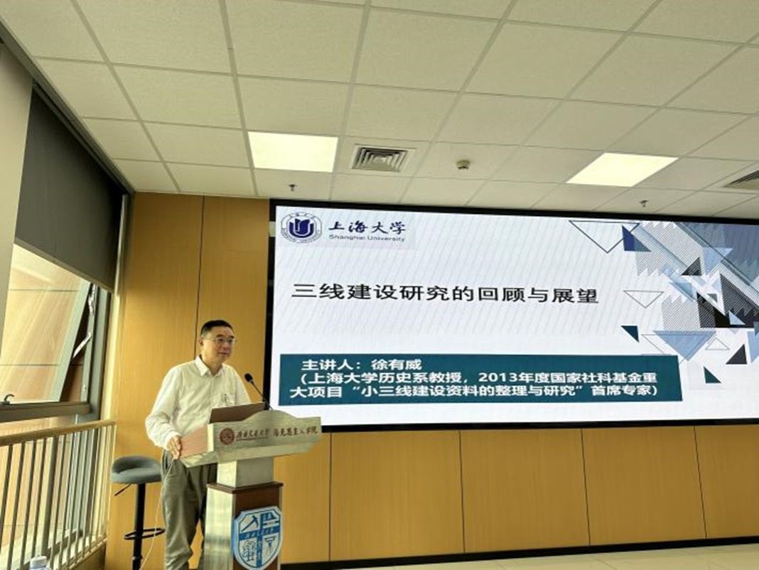 讲座伊始,徐有威教授从三线建设研究的起源谈起,在回顾三线建设发展历程后,讲述了研究小三线建设的缘由。在愉快的讲座氛围中,徐有威教授还分享了研究团队依托国家社科基金重大项目,搜集、整理的三线建设相关档案资料、口述史资料和民间文献,详细介绍了《小三线建设研究论丛》《Everyday Lives in China’s Cold War Military-Industrial Complex 》等系列科研成果。