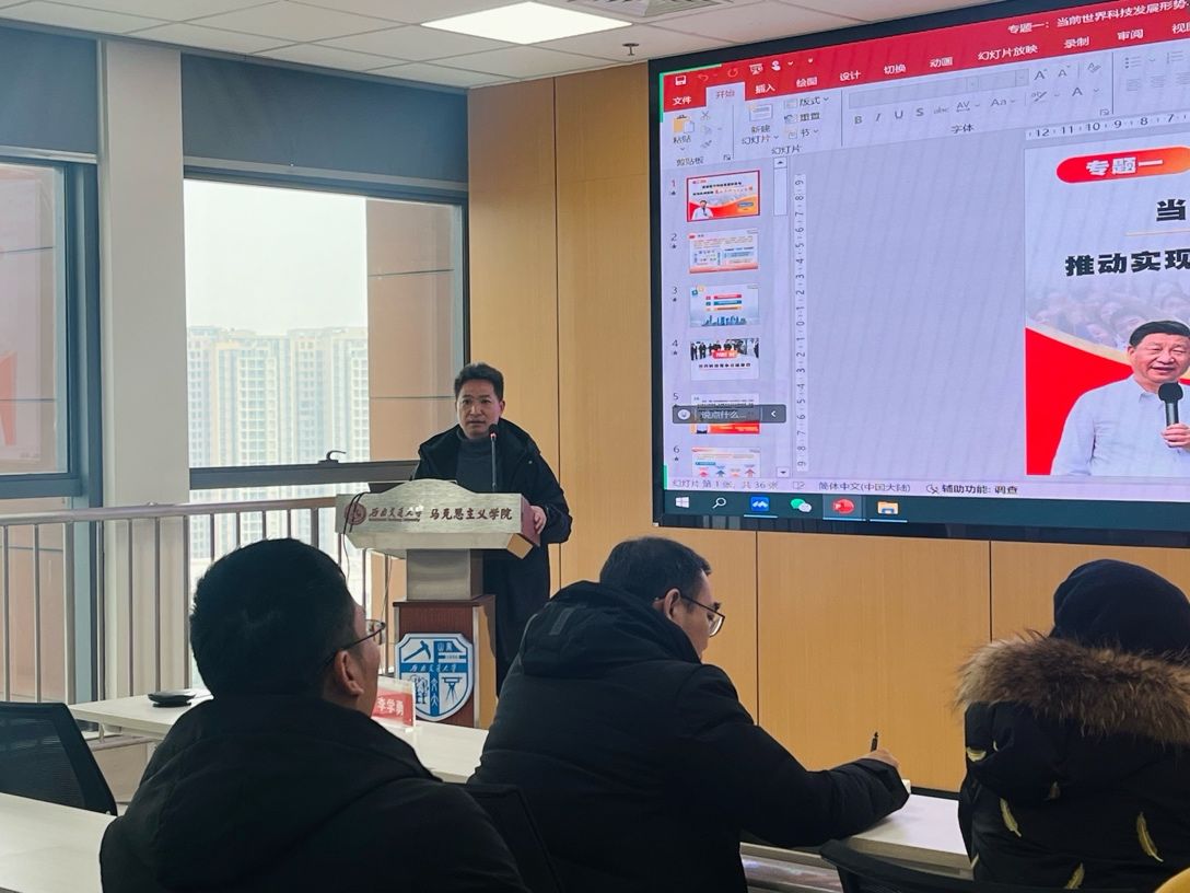 马先睿接着介绍了本学期“形势与政策”课的教学大纲和主要安排,并对“当前世界科技发展形势与推动实现我国高水平科技自立自强”教学专题进行了说课讲解。在说课过程中,马先睿勉励各位老师通过全面系统、突出重点、深入浅出、通俗易懂地讲解当前世界科技发展形势及我国科技面临的机遇挑战,让同学们认识到实现科技自立自强是全面建成社会主义现代化强国的必然要求,鼓励学生肩负起历史赋予的重任,勇做新时代科技创新的排头兵。
