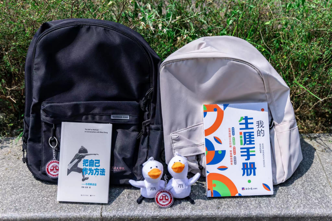 分别为本研新生准备了书籍《我的生涯手册》和《把自己作为方法》,邀请同学们在开学后共同阅读,并准备了院徽挂坠、定制书包以及“加油鸭”,助力生涯启蒙和学生成长。