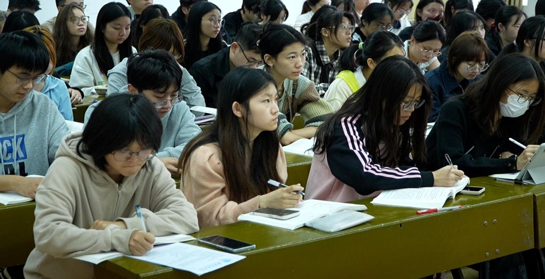 第二版块“习近平文化思想的实践运用”由方玲教授主讲。方玲结合自己在不同岗位履职的丰富经验,从生活小事、工作小节出发,用大量案例生动讲述了习近平文化思想的具体表现和运用方法,耐心解答了几位同学的思想困惑,有效增进了同学们对习近平文化思想的理解。方玲强调,积极向党组织靠拢、争取早日入党和坚持党的领导是青年学生应有的追求和信仰,因为真理的味道很甜,能够引领我们走向光明的未来;要坚守意识形态红线,谨防落入各种陷阱;还要有意识培养大局观、发展观、智慧观,脚踏实地做好本职工作,不断磨炼个人意志。