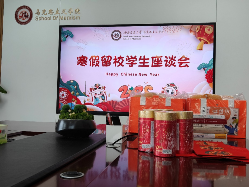 党委书记廖军、院长田永秀、党委副书记邓秀芸、研究生辅导员赵晨与寒假留校学生齐聚一堂,共话学习生活,传递温暖关怀。座谈会由邓秀芸主持。