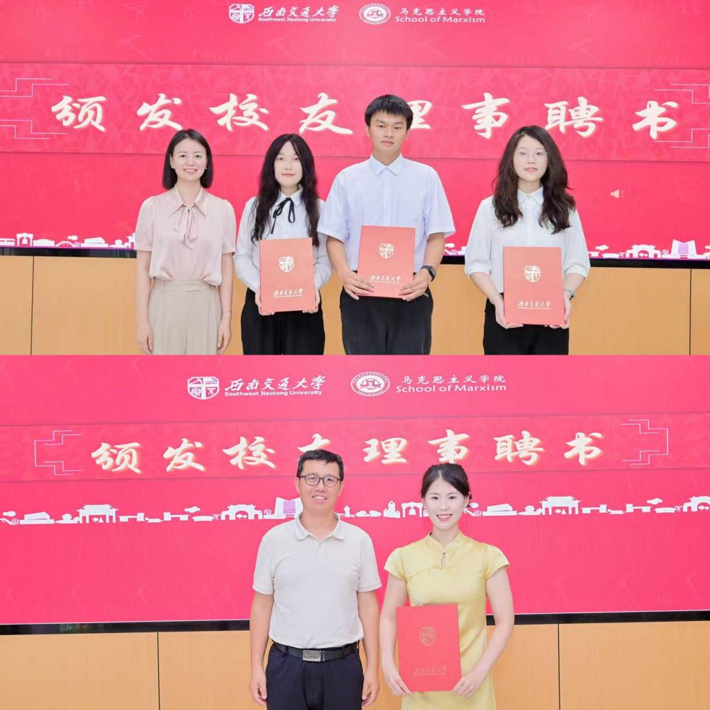 邓秀芸、思政培研中心副主任杨伟宾分别为2025届校友理事颁发聘书,勉励他们积极搭建校友与母校、校友与校友沟通的桥梁。