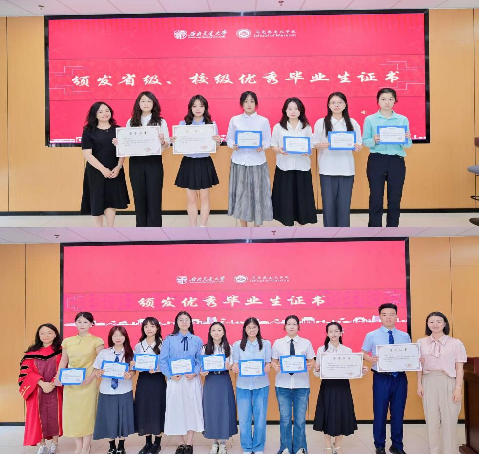 在庄重而热烈的氛围中,副院长谢瑜为省级、校级优秀本科毕业生颁发荣誉证书;党委副书记邓秀芸、副院长王菁为省级、校级优秀研究生毕业生颁发荣誉证书。