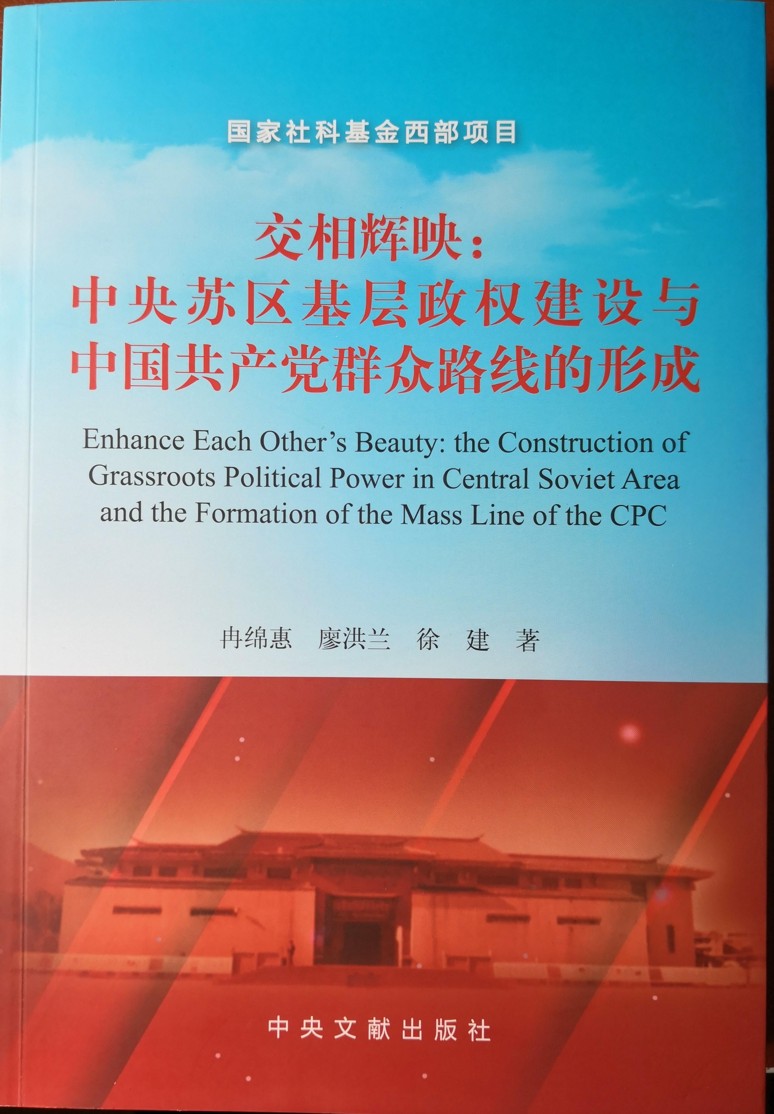 2021年是中国共产党成立100周年,为庆祝中国共产党成立100周年,我院提前谋划、合理布局,切实做好党史学习教育,已取得初步良好成效,取得标志性成果。川陕革命老区与长征文化研究团队负责人、国家首批一流课程“概论”课负责人冉绵惠教授学术专著《交相辉映:中央苏区基层政权建设与中国共产党群众路线的形成》于近期由中央文献出版社出版。