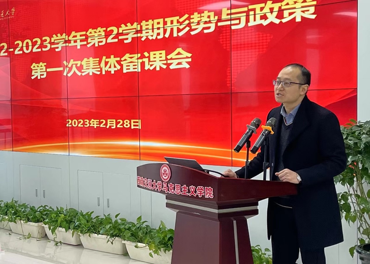 廖军书记首先传达了教育部“开学第一课”有关文件精神,要求全校“形势与政策”课任课教师以党的二十大精神为指导,依托课堂教学,重点针对我校本科学生关注的主要问题、存在的思想困惑和实际需求,以提振信心、凝聚人心为目标引领,切实将党的最新文件精神、路线方针带入“形势与政策”课堂,利用好思政课主渠道做重点专题的理论阐释。