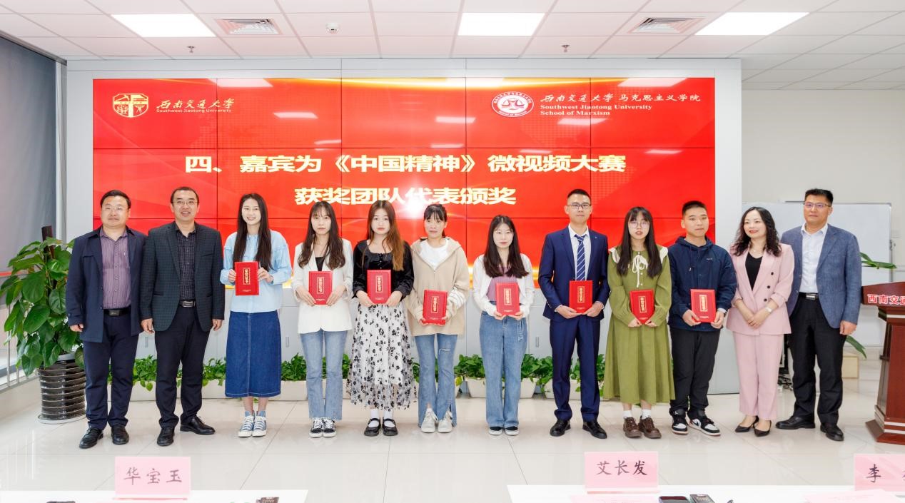 《中国精神》微视频大赛颁奖典礼环节,与会成员集体观看了微视频大赛宣传片,随后由研究生院副院长艾长发教授宣布了《中国精神》微视频大赛获奖作品名单,并由出席会议的领导嘉宾为以上获奖团队代表颁奖。