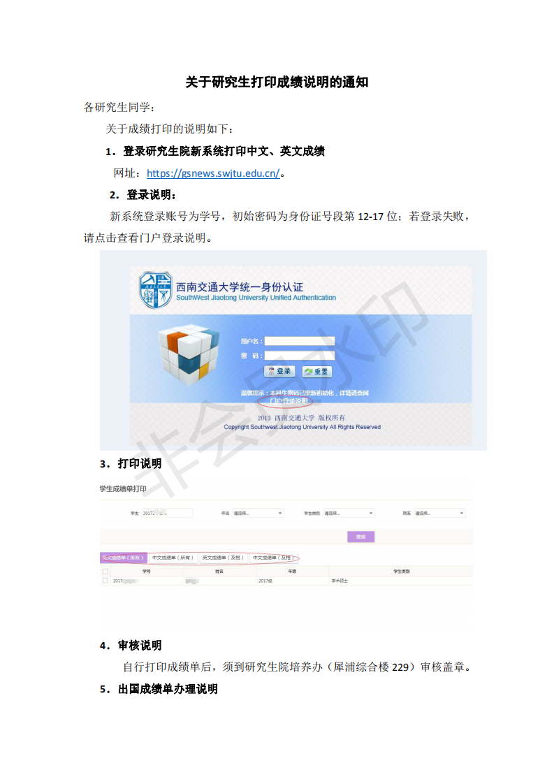 所有研究生可登录研究生院新系统打印中文、英文成绩;