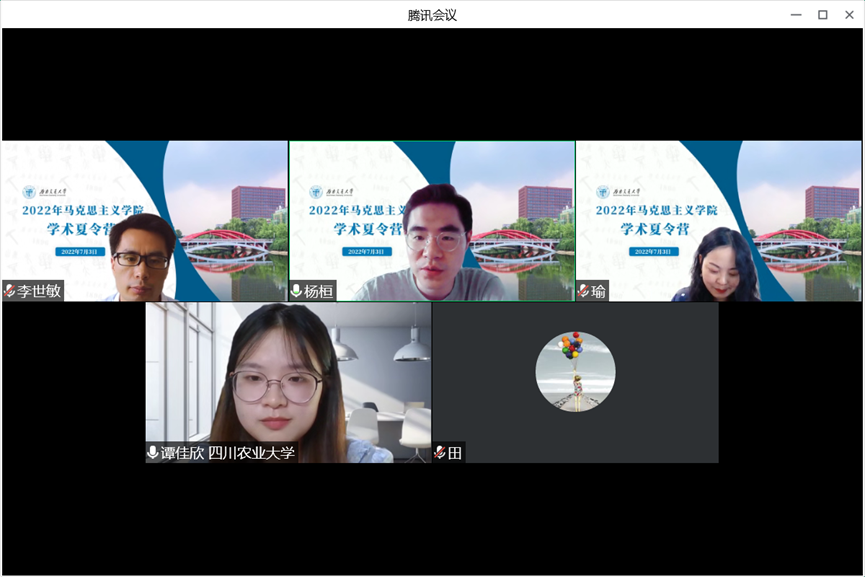 At 9 a.m., the opening ceremony was officially held on Tencent Meeting platform. First of all, Xie Yu, Associate Dean of the School of Marxism, presided over the opening ceremony. She welcomed campers from universities around the country, and hoped that all campers could cherish the opportunity of this Academic Summer Camp to communicate actively with teachers, abide by relevant regulations, and fully show themselves in this summer camp.
