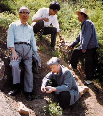1986年,卢肇钧(左一)在进行采样工作