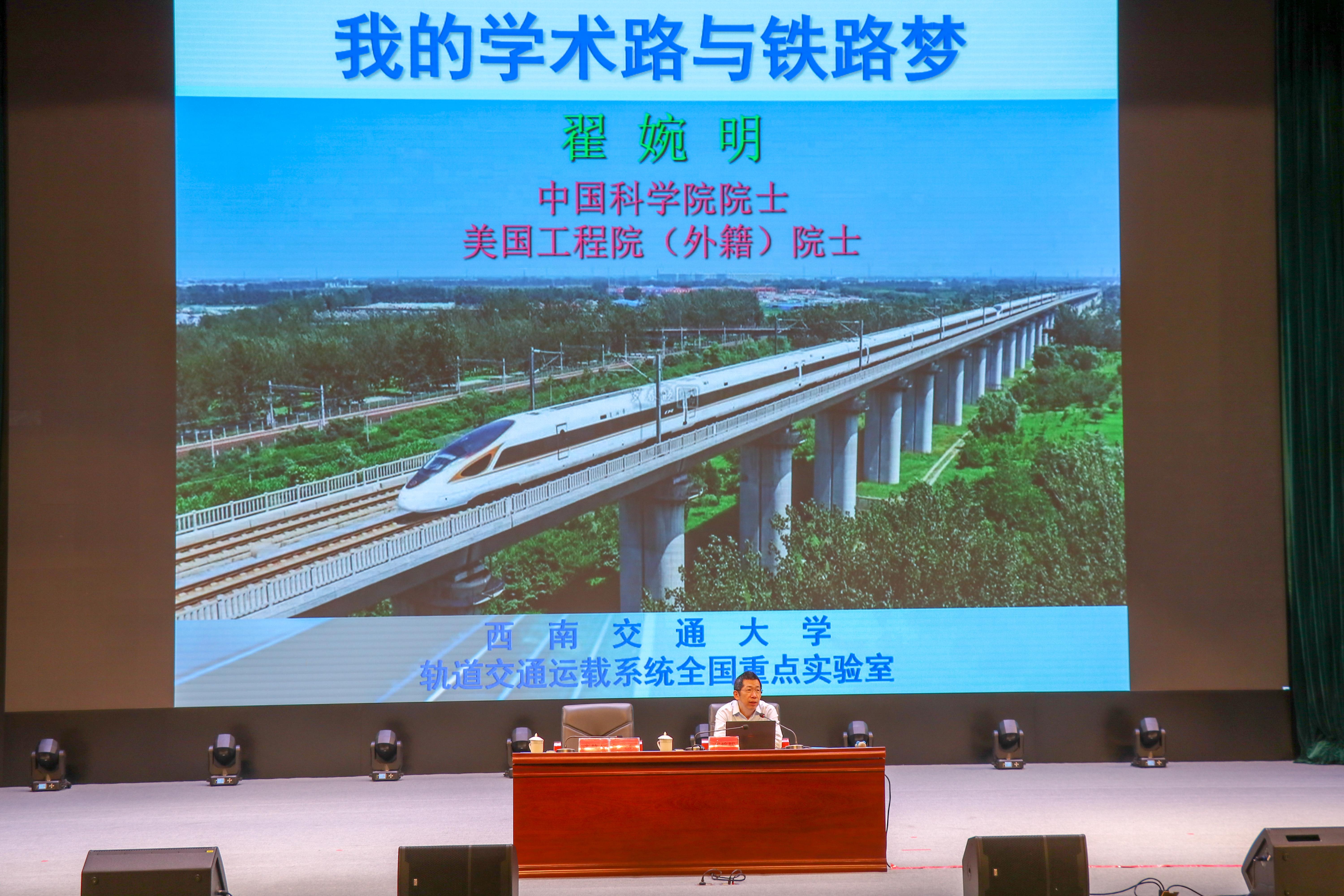 翟婉明院士在讲座中分享了自己的求学路、学术路,青春梦与铁路梦。他以朴实的奋斗励志故事,以自身的求学经历,告诫学子们要敢于质疑,对科学研究要保持一种执着的进取精神,激励学子为新时代社会主义现代化强国贡献自己的青春力量。