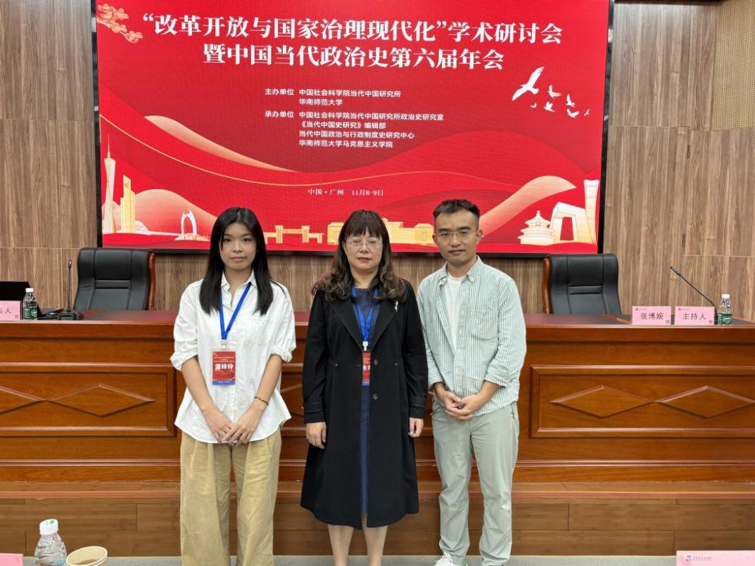 2025年11月7-9日,我中心田永秀教授、闫磊副教授和硕士生蒲玲玲赴华南师范大学参加“改革开放与国家治理现代化”学术研讨会暨中国当代政治史第六届年会。
