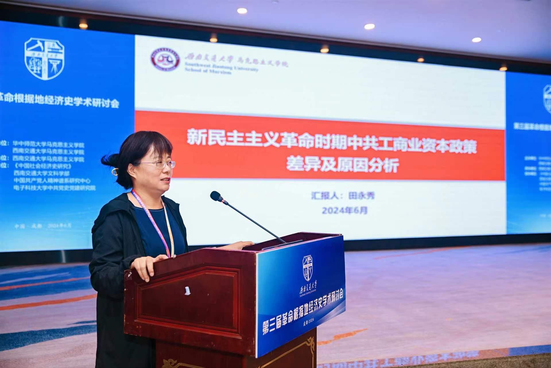 执行院长田永秀教授发言题为《新民主主义革命时期中共工商业资本政策差异及原因分析》,指出新民主主义革命时期,中共肯定工业资本,贬低商业资本;积极发展工业,强制商业资本转化为工业资本。一方面是因为受到马克思资本论和共产国际看法的影响,另一方面也是中共对近代中国社会经济状况的分析。