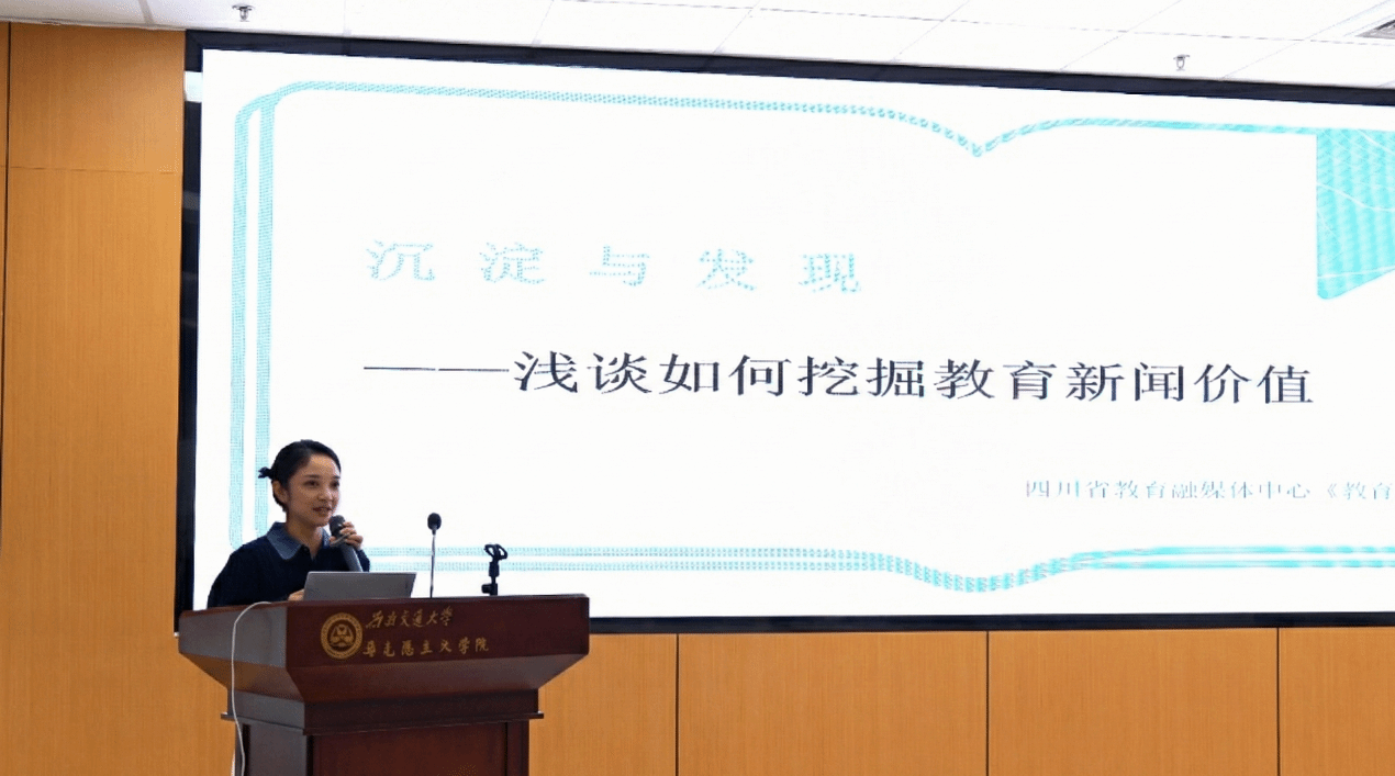沙龙特别邀请四川省教育融媒体中心新闻编审事业部副部长、《教育导报》副总编辑倪秀进行分享。倪秀以《沉淀与发现——浅谈如何挖掘教育新闻价值》为题,结合多年宣传工作经验,以新闻选题入手,深入探讨了教育改革宣传的策略。她分享了“西南交大‘孪生数字人辅导员’”“求职路上的‘三次助攻’——色情电影
